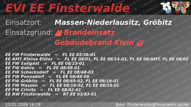 Am 07.02.2026 kam es in einer Gaststätte in Jocksdorf Landkreis Spree-Neiße zu einem Gebäudebrand. Der Brand trat im Heizungsraum auf und wurde um 18:41 Uhr gemeldet. Die Feuerwehr rückte umgehend mit Atemschutz und Kleinlöschgerät zur Brandbekämpfung ins Gebäude aus. Zügig […]