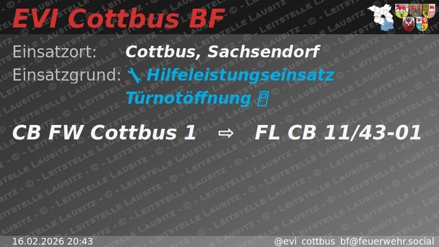 Am Samstag den 24.01.2026 kam es im Stadtteil Cottbus-Schmellwitz zu einem großflächigen Stromausfall. Infolge dessen wurden die Berufsfeuerwehr Cottbus sowie der Katastrophenschutz der Stadt Cottbus alarmiert. Als vorsorgliche Maßnahme wurde ein sogenannter „Leuchtturm“ in einer Turnhalle in der Ernst-Mucke-Straße eingerichtet. […]