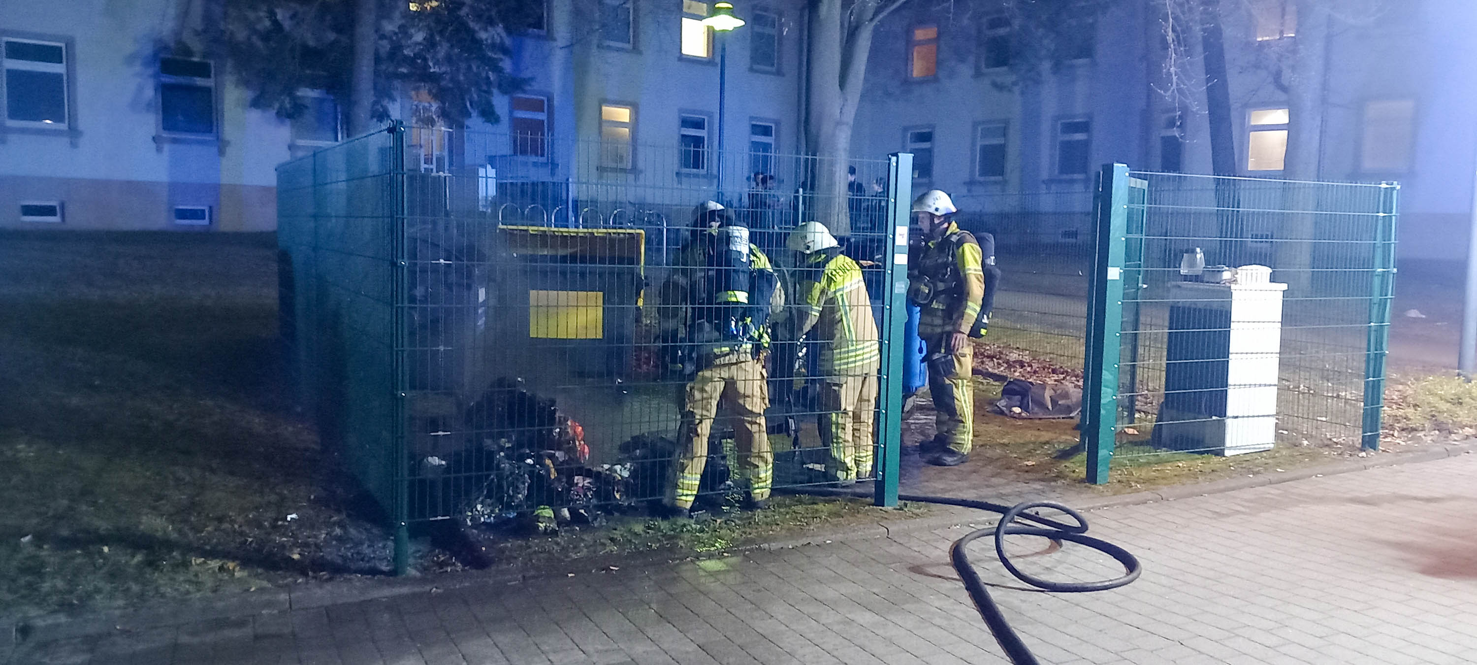 Die Feuerwehr begann umgehend mit den Löscharbeiten und konnte den Brand zügig unter Kontrolle bringen. Nach Abschluss der Maßnahmen stellte sich heraus, dass sich in dem Müllcontainer auch ein E-Scooter befand, der durch das Feuer ebenfalls zerstört wurde.